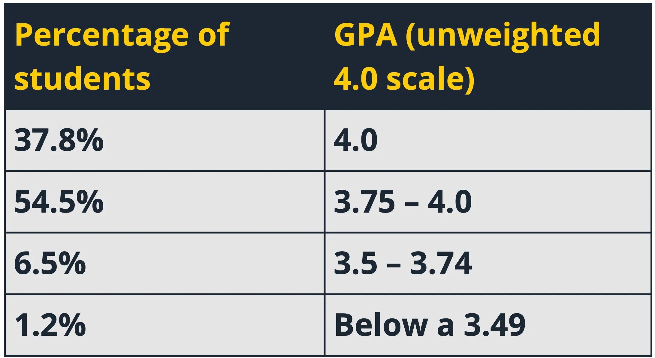 The student with a GPA below 3.75 is not in great company for Michigan, as a mere 7.7% of enrolled students fall into this category.